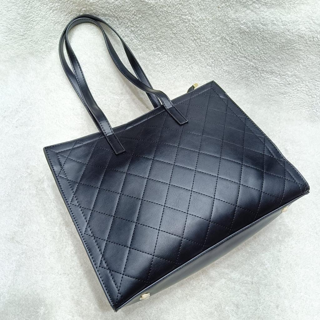 Leather Quilted Metal Chain Tote Bag